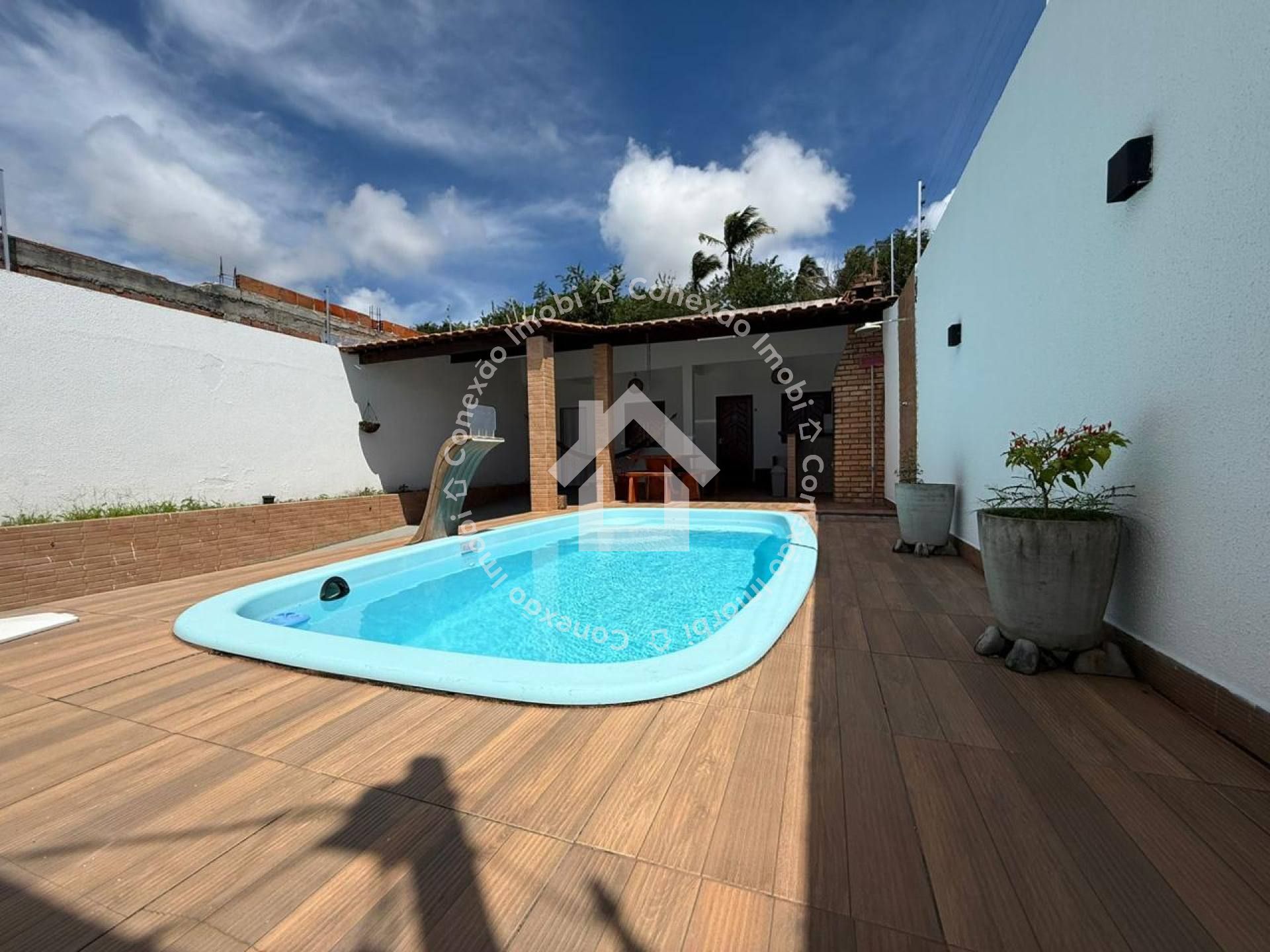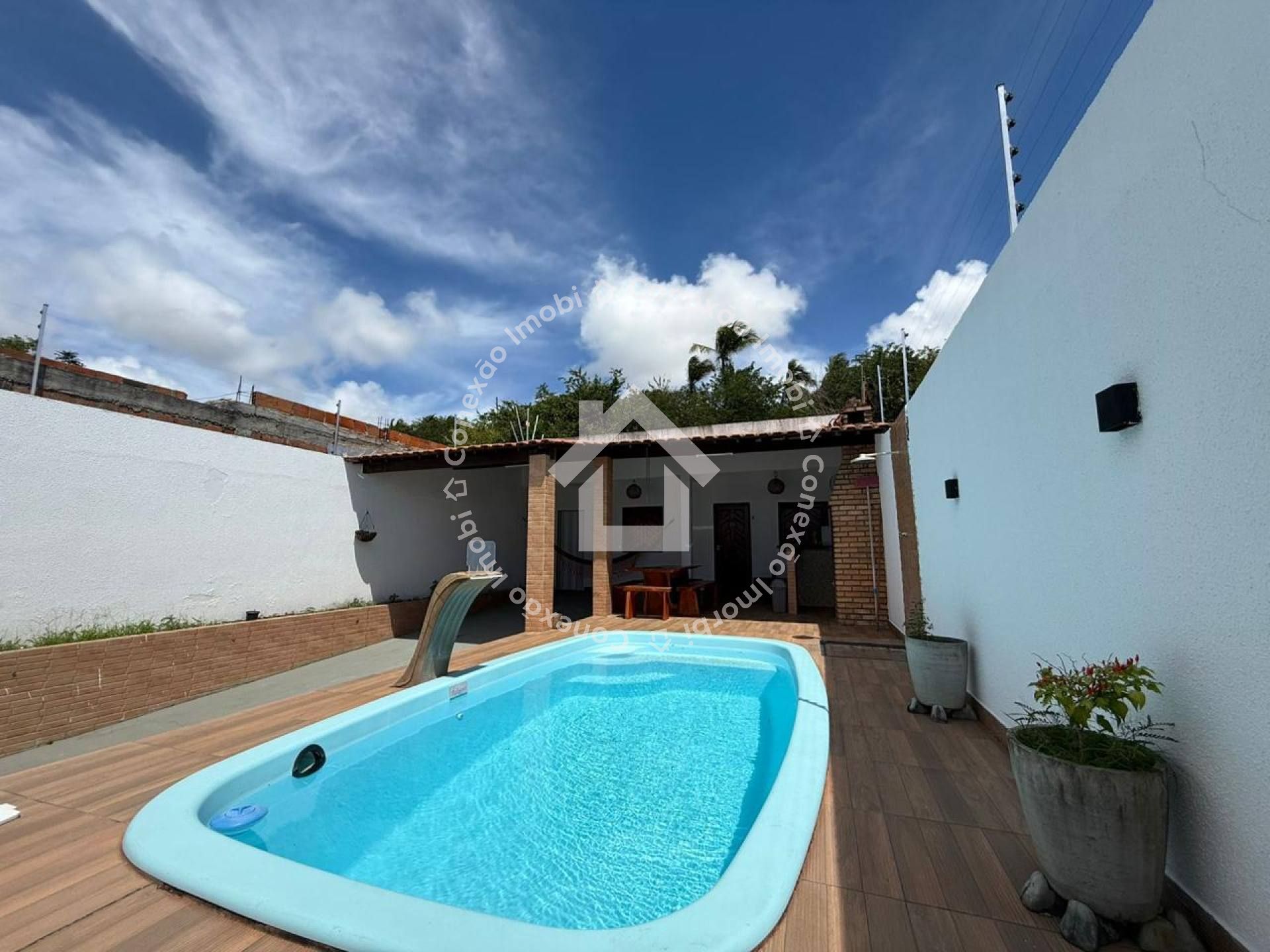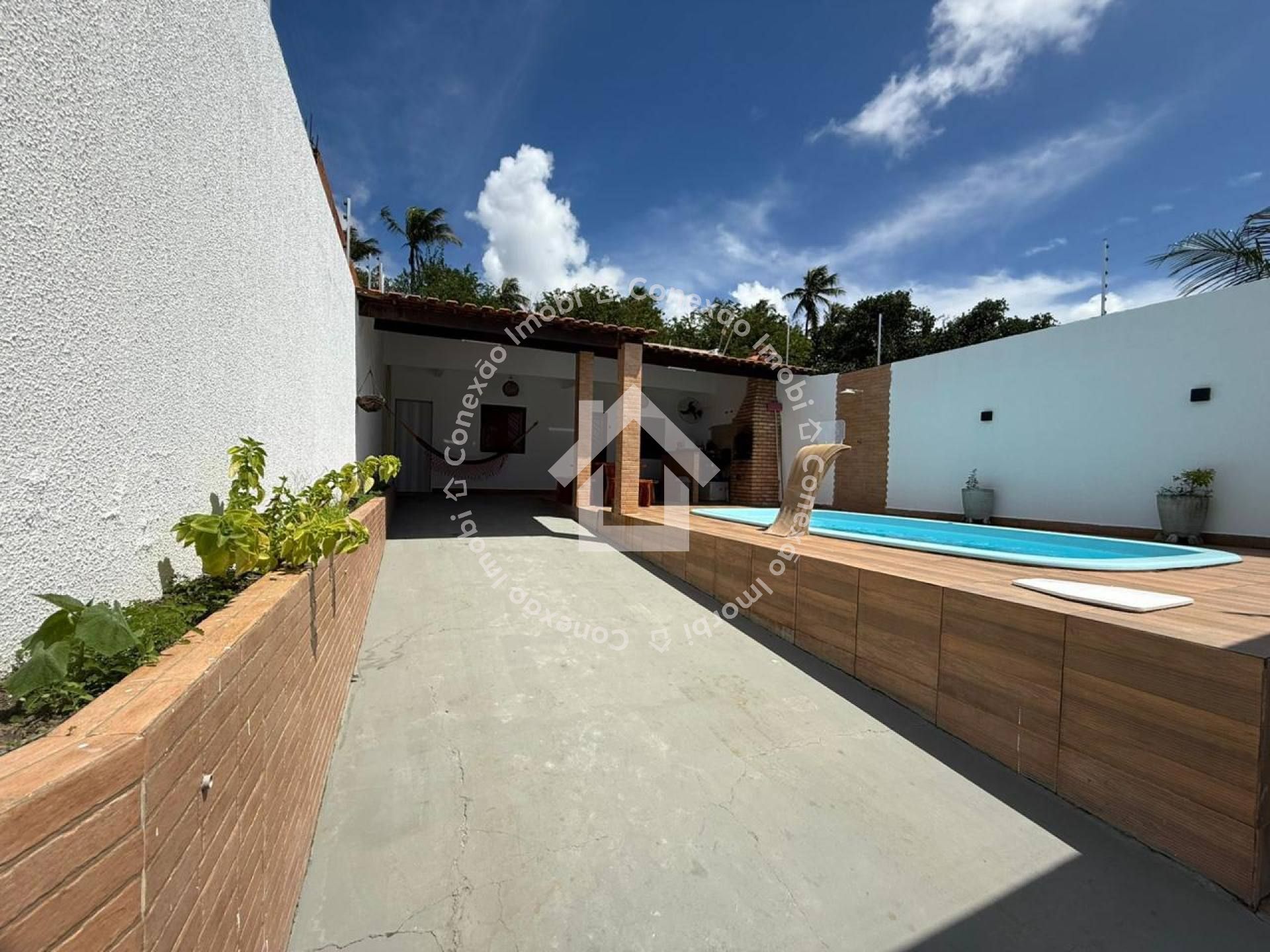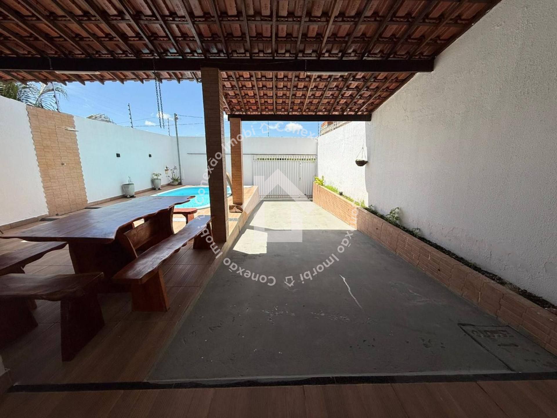 Na área externa, o imóvel se destaca com uma excelente estrutura de lazer, incluindo piscina, churrasqueira e área murada, ideal para momentos de convivência e segurança. Possui também portão eletrônico e 3 vagas de garagem, oferecendo mais praticidade no dia a dia.