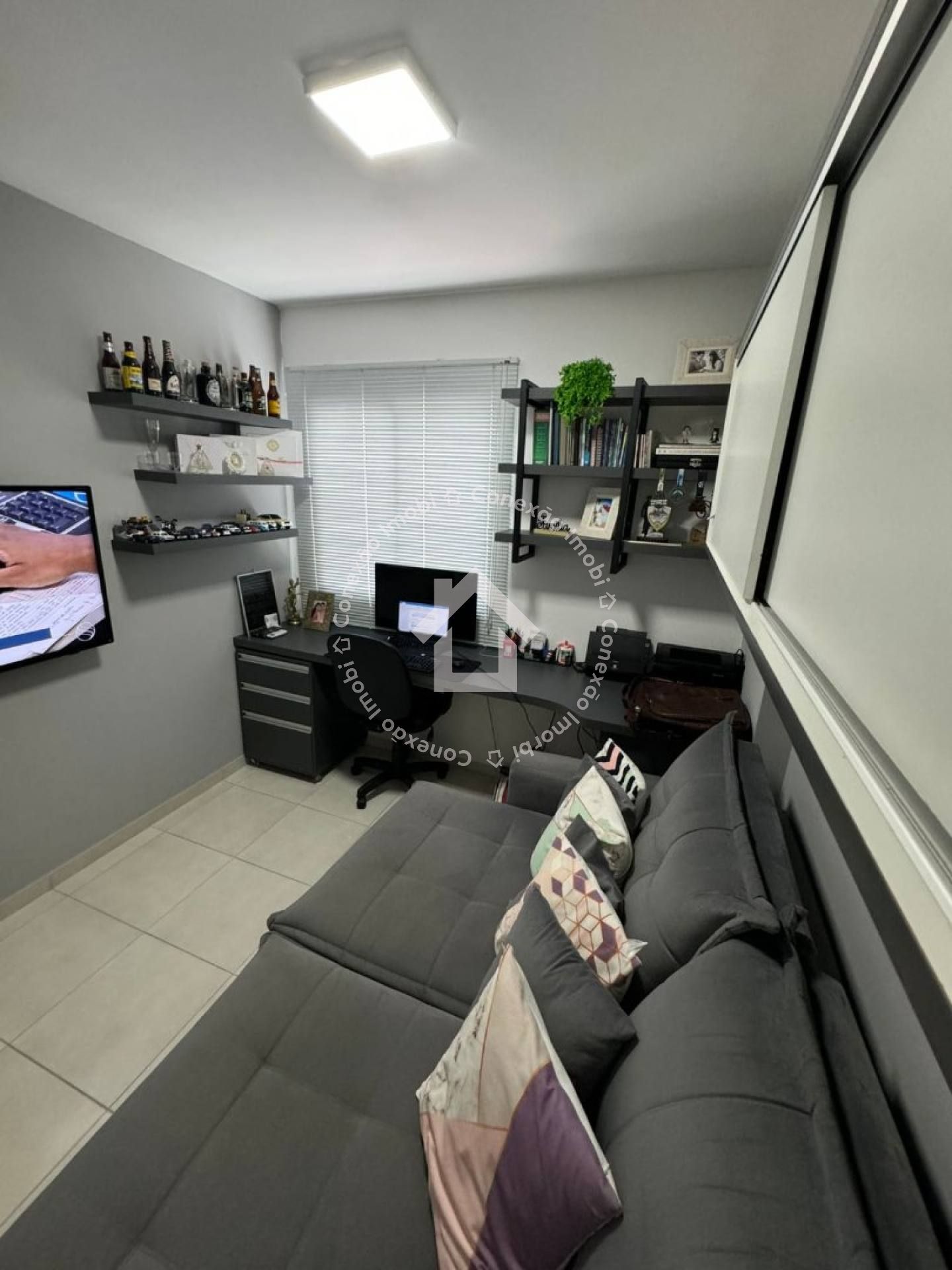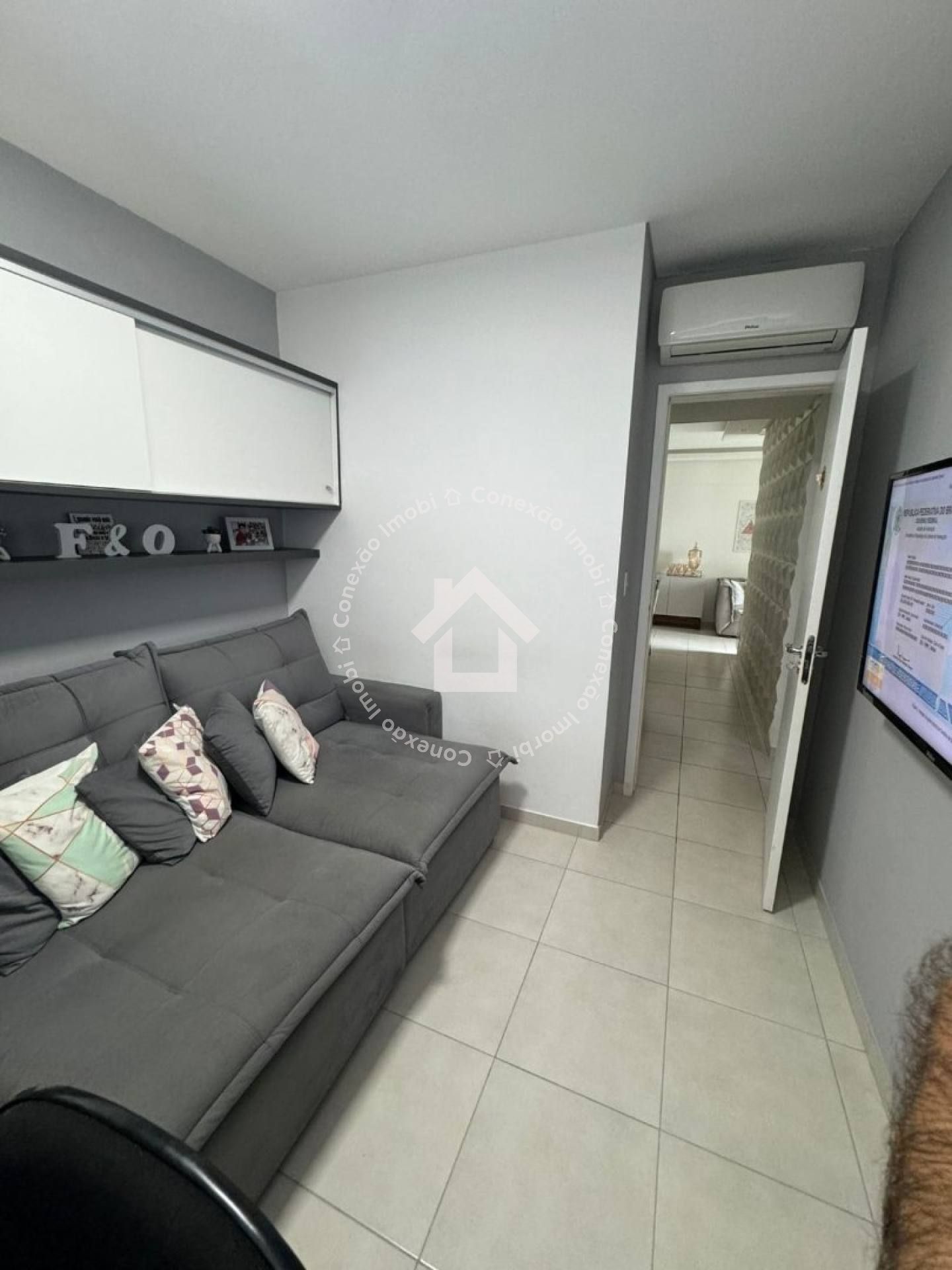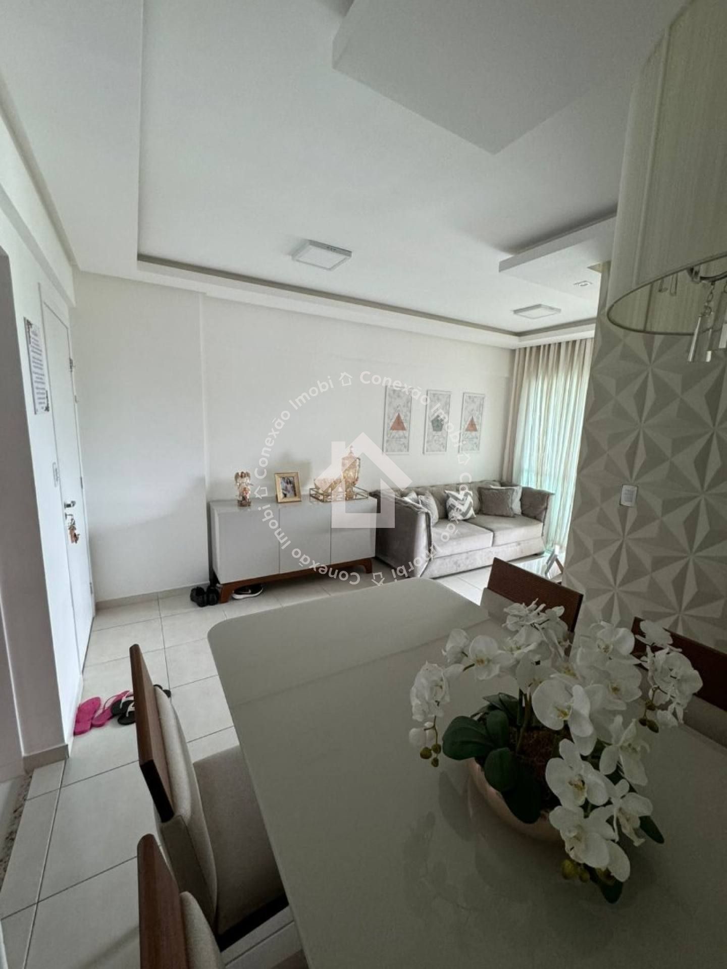 São 3 quartos, sendo 1 suíte, além de 2 banheiros muito bem distribuídos. A sala ampla em L proporciona dois ambientes integrados, com acabamento em gesso, projeto de iluminação no teto e painel 3D, garantindo um toque moderno e aconchegante ao espaço.