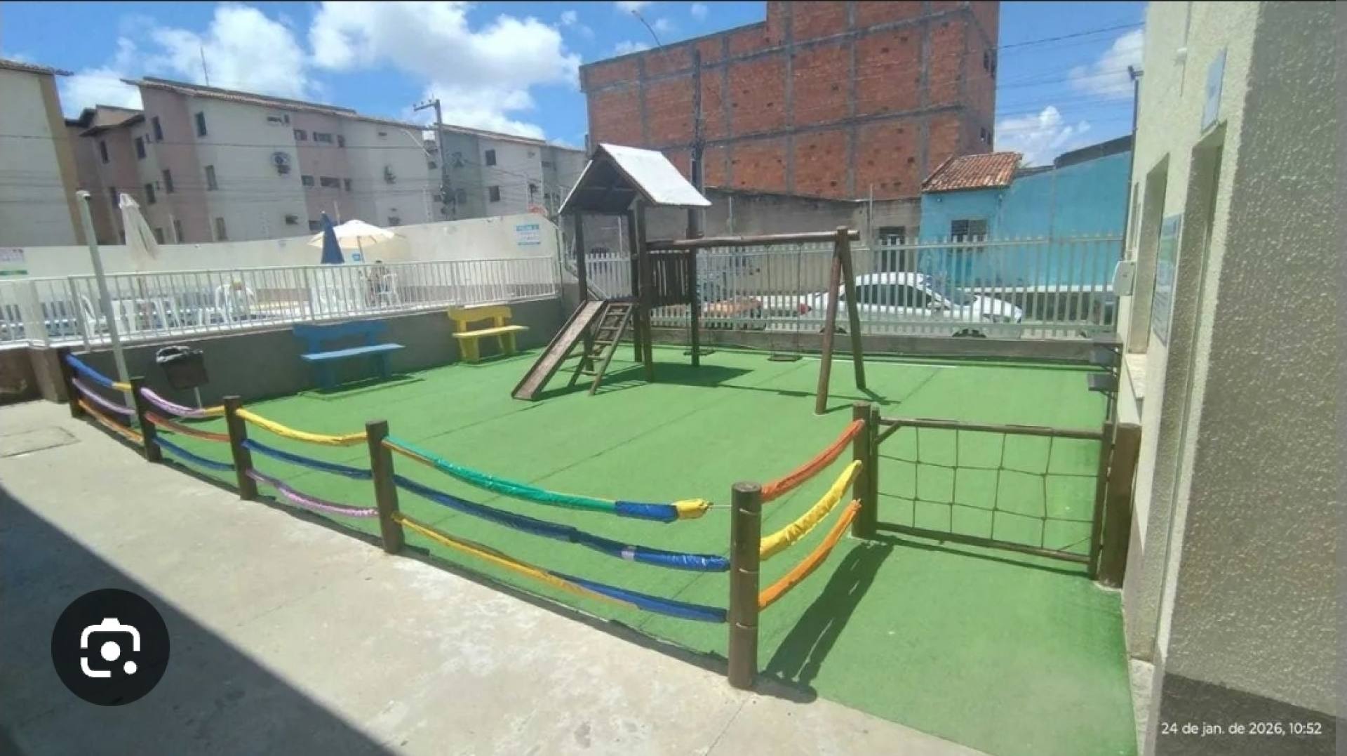 O condomínio oferece área de lazer completa, incluindo piscina adulto e infantil, área gourmet com churrasqueira, salão de festas, parquinho infantil e portaria 24 horas, garantindo segurança e conforto aos moradores. Outro diferencial é o gás incluso no valor do condomínio, agregando economia mensal.
